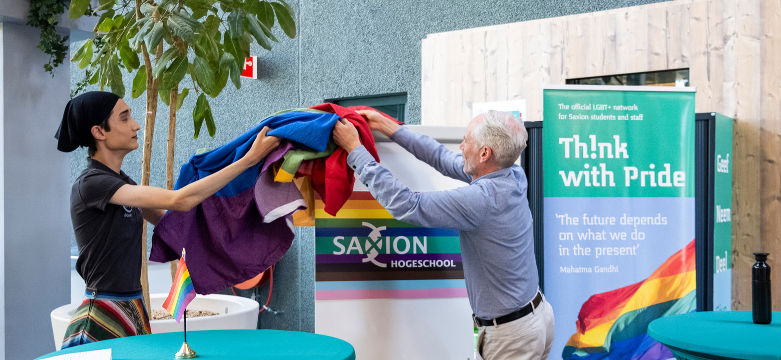 Saxion kent vanaf nu een Pride-logo, een variant op het logo van Saxion, dat in de toekomst bijvoorbeeld te zien zal zijn op LHBTIQ+-gerelateerde evenementen. De bedoeling is dat er ook een sticker van komt, die studenten op hun laptop kunnen plakken.
